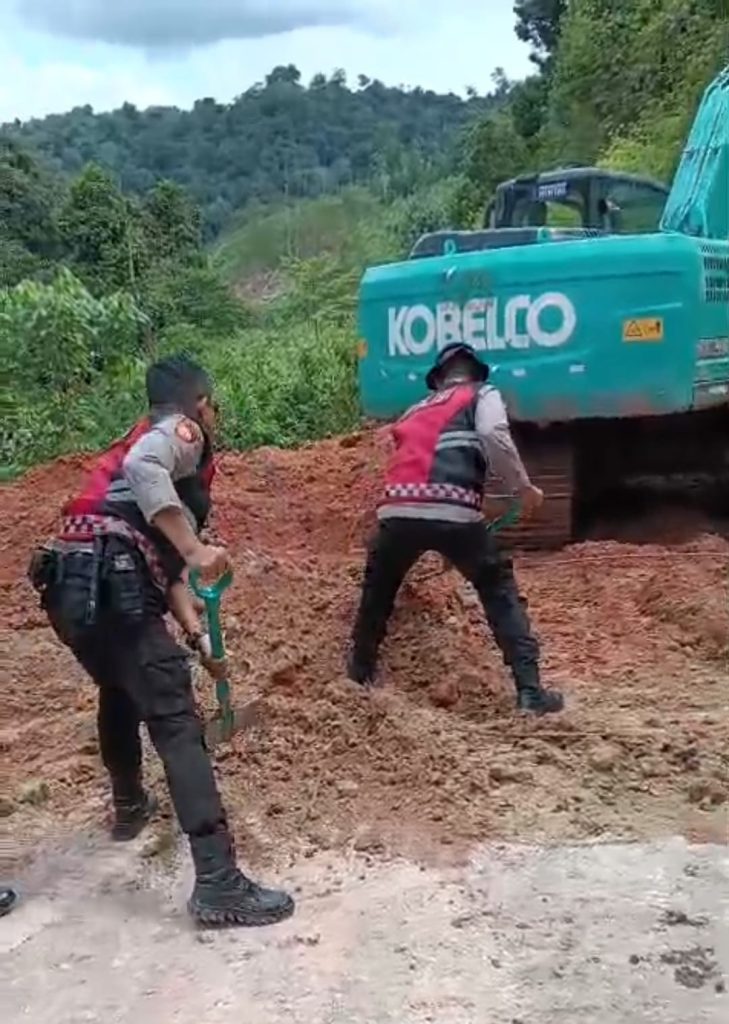 Sat Samapta Polres Banjar bersama Dit Samapta Polda Kalsel, Sat Lantas Polres Banjar, Polsek Sungai Pinang, serta Dinas PUPR Provinsi Kalsel turun langsung ke lokasi untuk melakukan penanganan material longsor yang sempat menutup akses jalan utama tersebut.